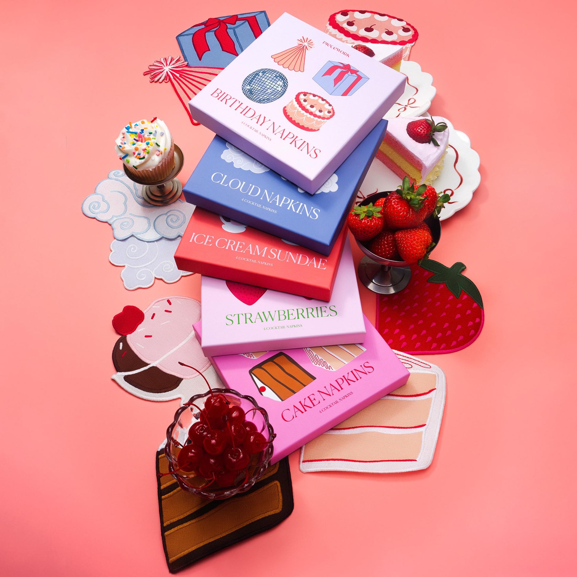 Our cocktail napkin sets turn any gathering into an occasion. Explore The Confectionery for more sweet-themed delights, or browse the Birthday Shop for festive favorites.