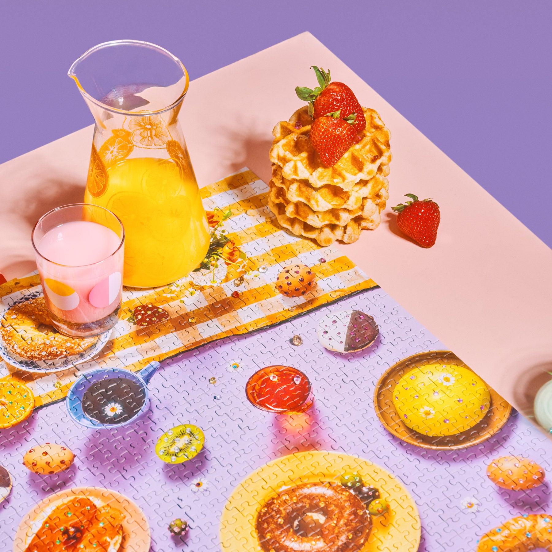Sparkly strawberries. Bedazzled bagels. Rhinestoned olives. Tiny, tiny daisies. This glittering smorgasbord is truly the breakfast of champions. It’s just like the old saying: all that glitters is...a truly delightful brunch puzzle.