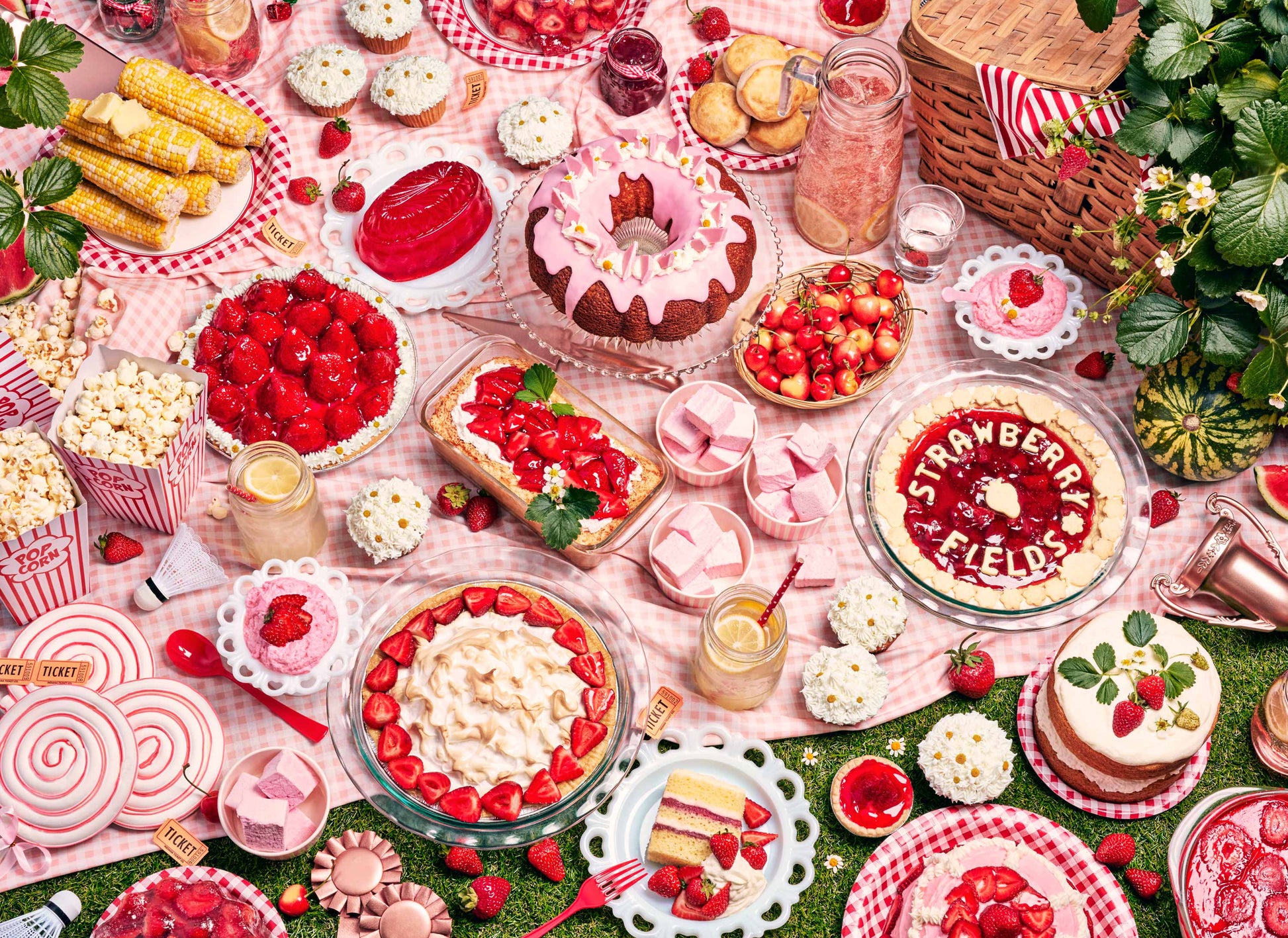 Step right up and take a swing at a tribute to wholesome fun, long days, and the queen of all berries. This county fair picnic is filled with pie, gingham, pink lemonade, and enough cottagecore to last the summer.