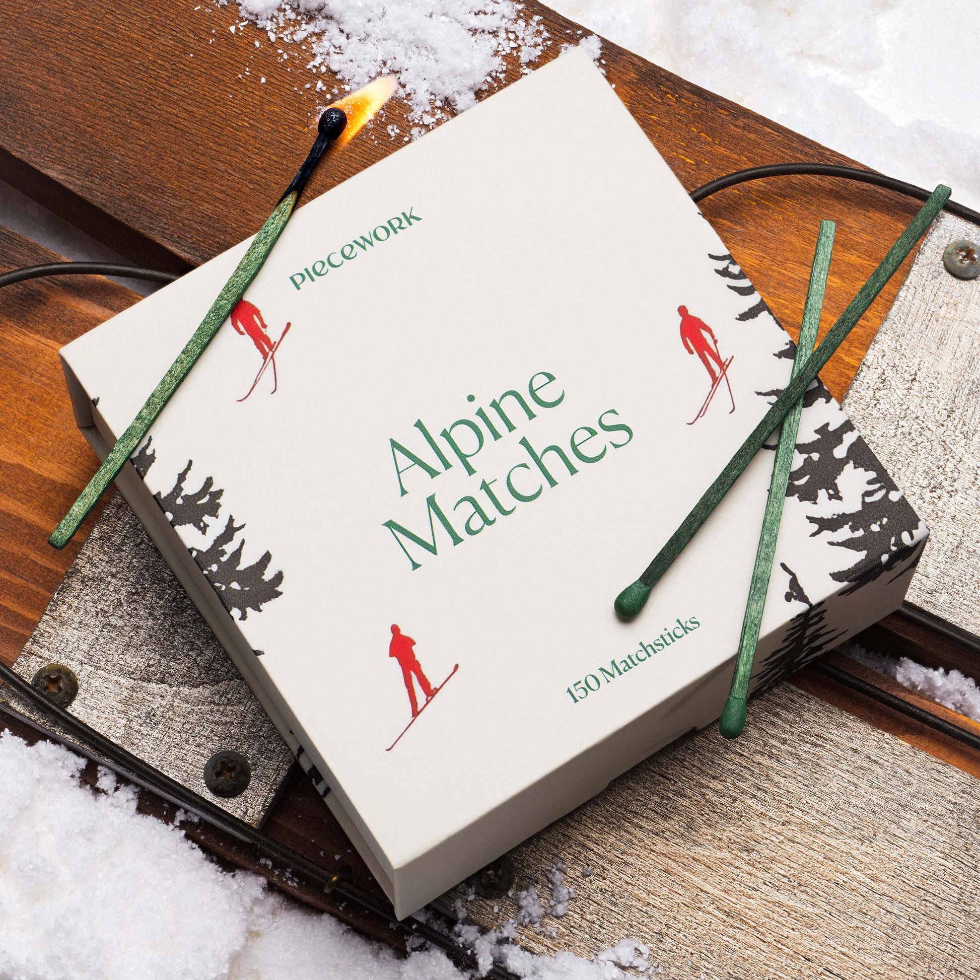 Alpine Matches are a premium set of matches in hues evocative of winter evergreens—chalet chic straight from the summit. They’re the perfect spark for fire-lit evenings and après-everything moments. One strike and everything is snowy slopes and crisp mountain air.