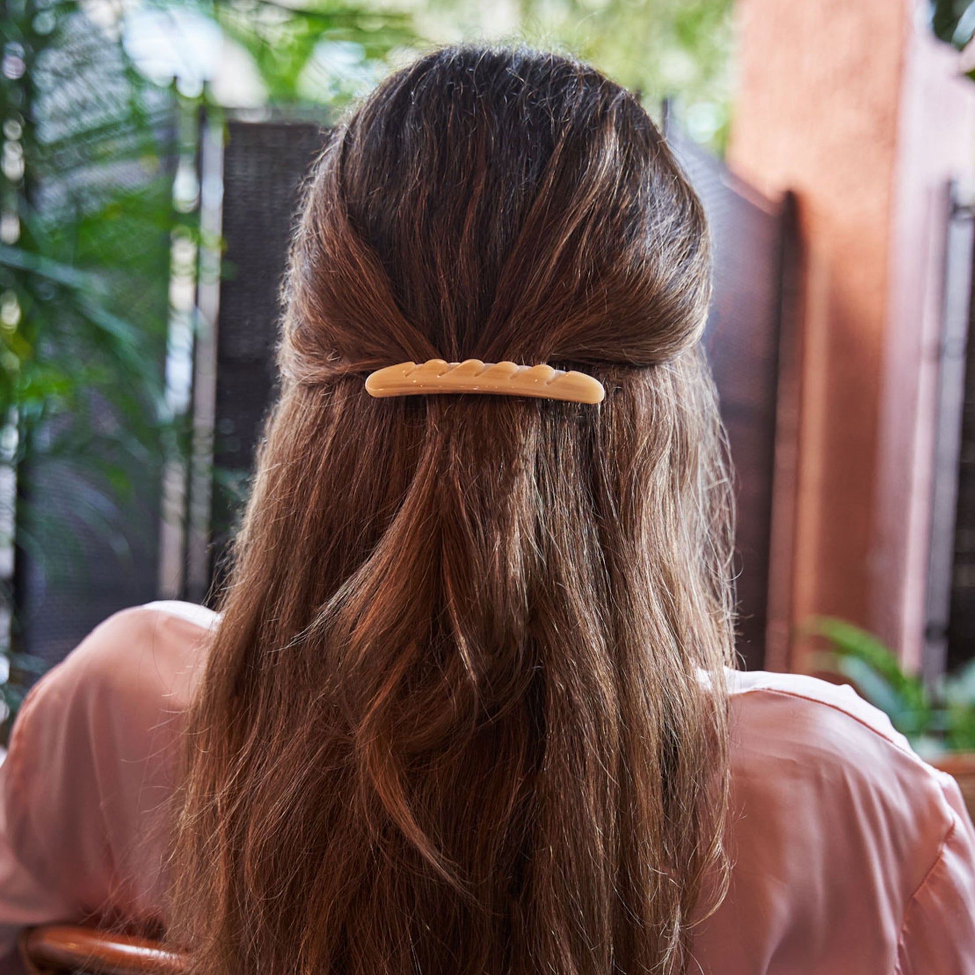 Not only does this barrette-style MLE clip — made from plant-based and eco-friendly acetate — closely resemble a loaf of french bread, it also comes in an adorable little paper bag. In our book, that is very, very hard to pass up.
