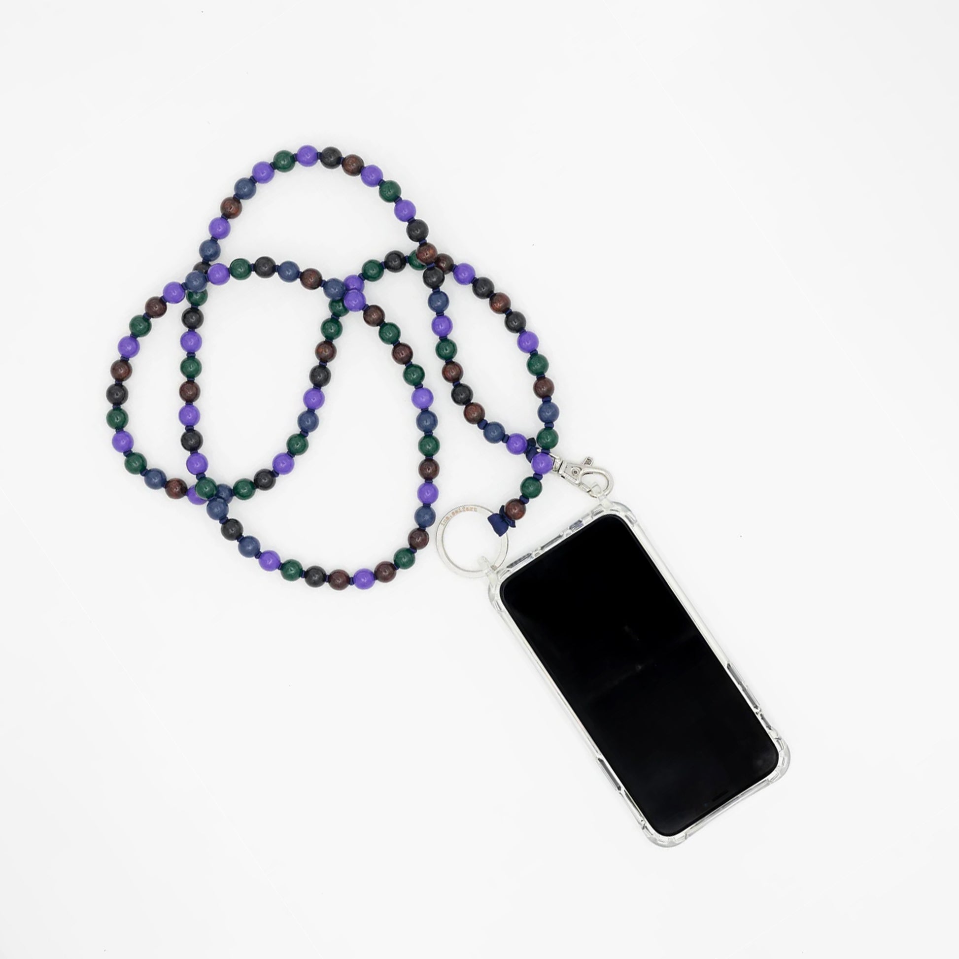 - Materials: 10mm certified sustainable (FSC) wooden beads with vegan, non-toxic varnish, clear phone case and metal ring and clasp