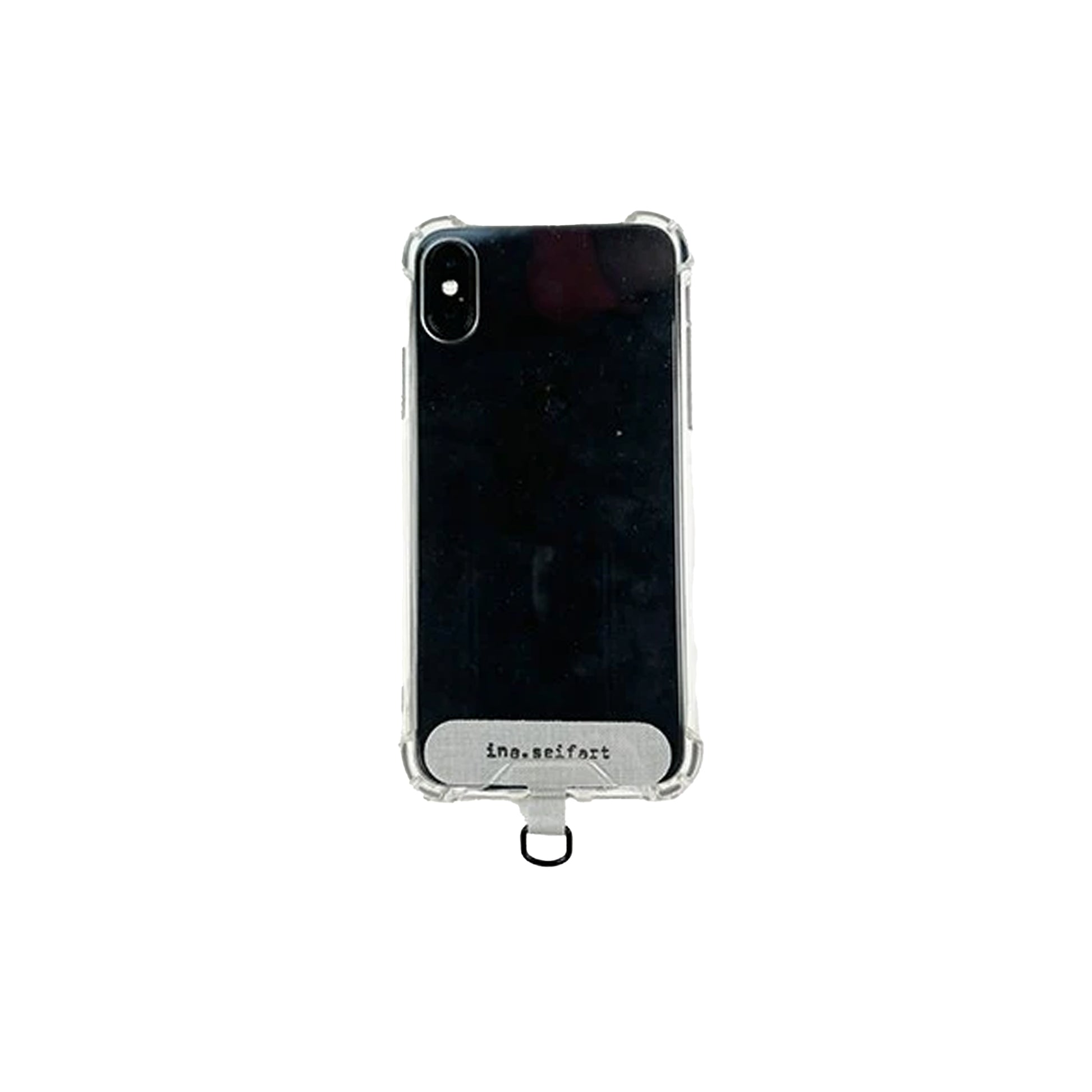 This beaded phone necklace by Ina Seifart features smooth wooden beads on a cord and includes a discreet adaptor that fits beneath your standard phone case—making it compatible with any size or model.