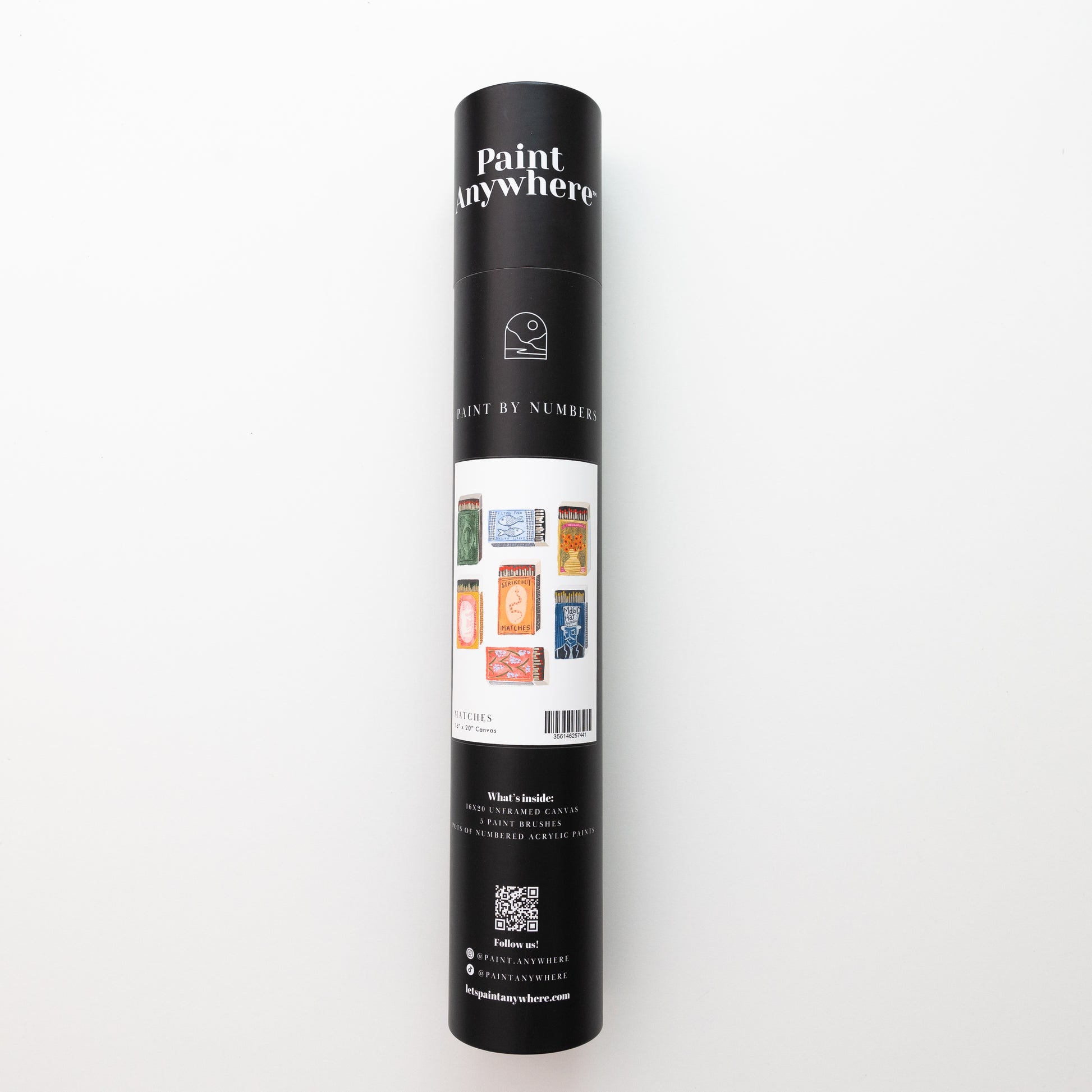 - Each kit includes a 16" x 20" stretched printed canvas, a set of 5 premium brushes, and 24 pots of acrylic paint with the appropriate colors with corresponding numbers