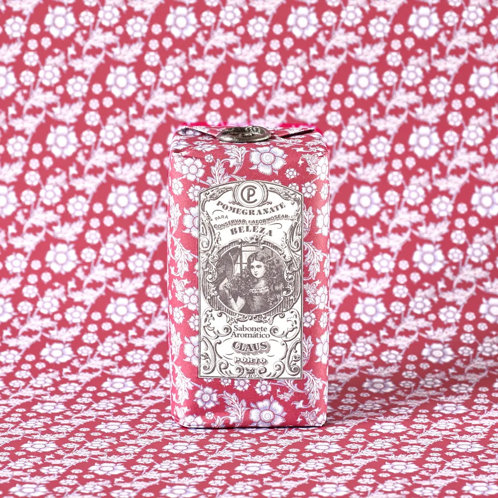 Rich, tart, and a tiny bit mysterious — like the first bite of a just-cracked pomegranate. This bar is all ripe fruit, soft florals, and that slightly opulent “I take very considered baths” vibe. Wrapped in one of Claus Porto’s signature archival prints, it feels almost too pretty to use (but you definitely should).