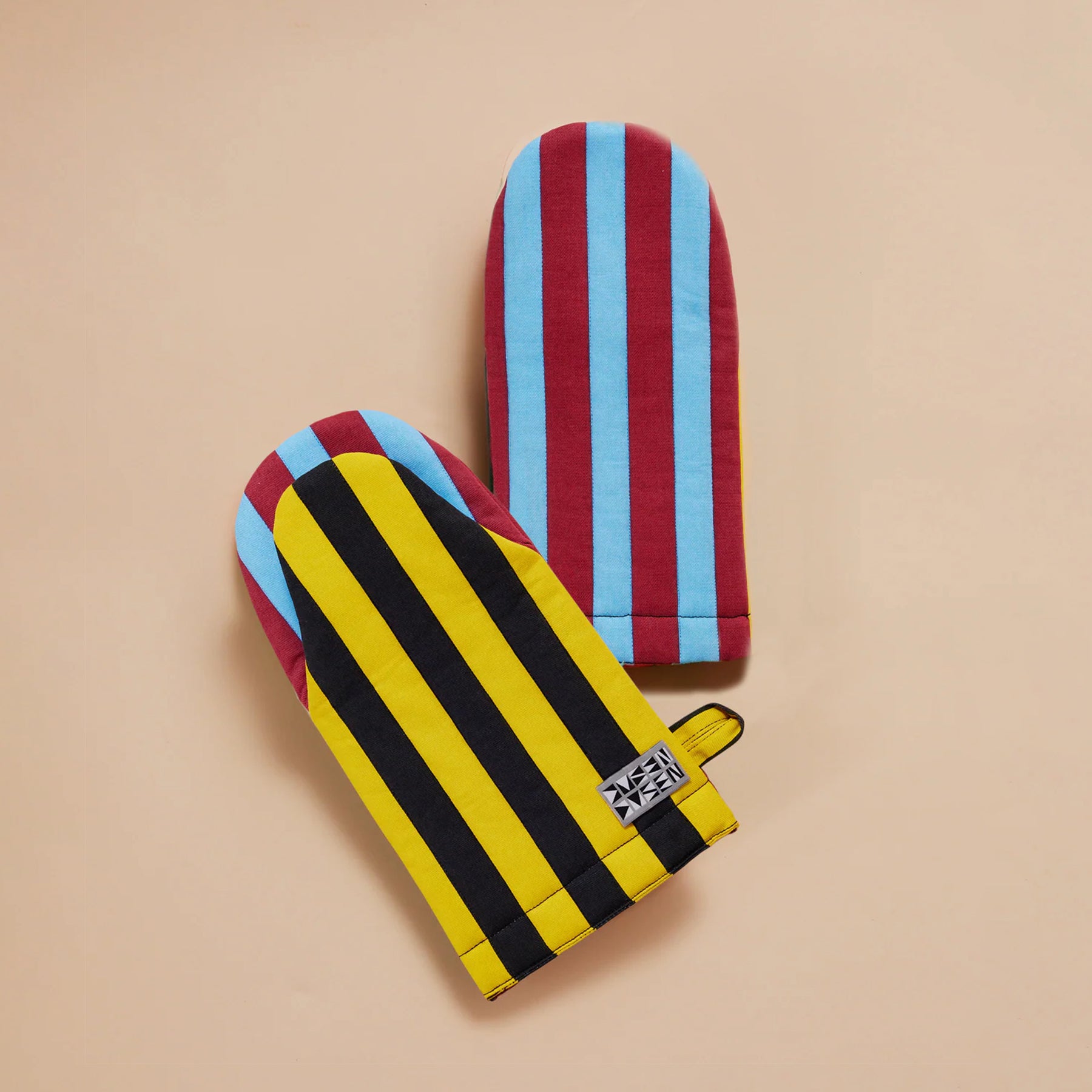 A study in stripes and scorch-proof confidence. Dusen Dusen brings their signature color sense to the kitchen — half function, half fashion, all flair. Proof that even your oven mitt can have a point of view.