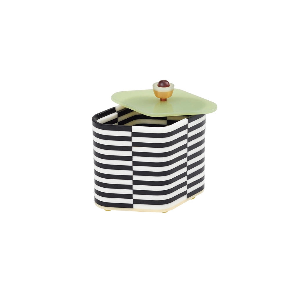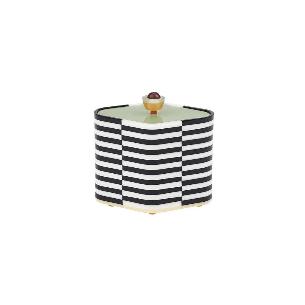 Architectural and playful in equal measure, the Panorama Trama Étoile Box turns everyday storage into a statement. Its wavy black-and-white pattern bends across smooth porcelain planes, crowned with a sculptural lid that feels part art piece, part keepsake.