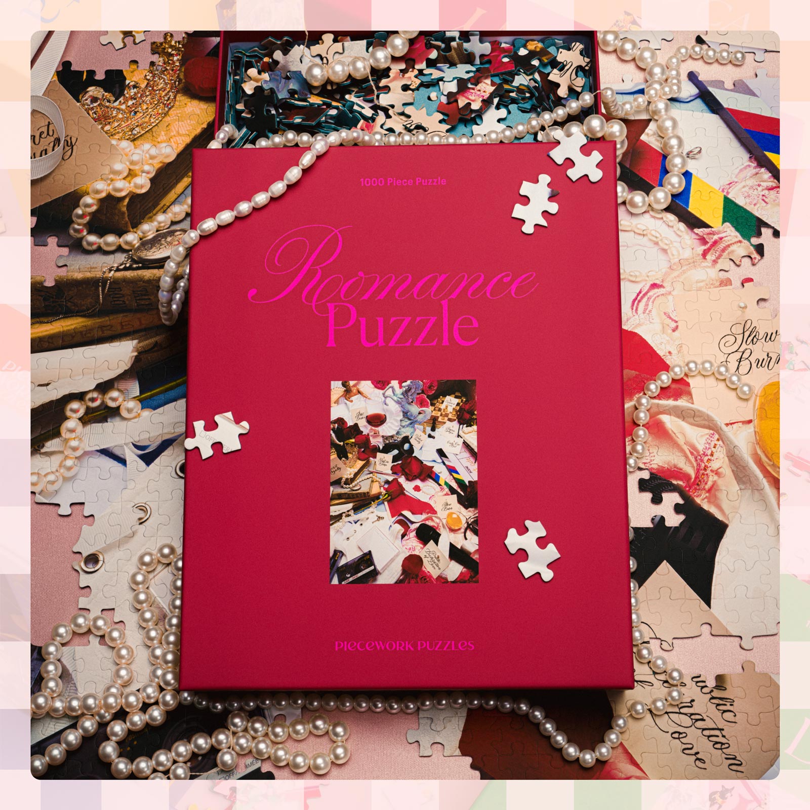 Romance Puzzle, a 1000-piece celebration of love in all its tropes! Playful, passionate, and a little over-the-top, it’s a puzzle made for hopeless (and hopeful) romantics alike.