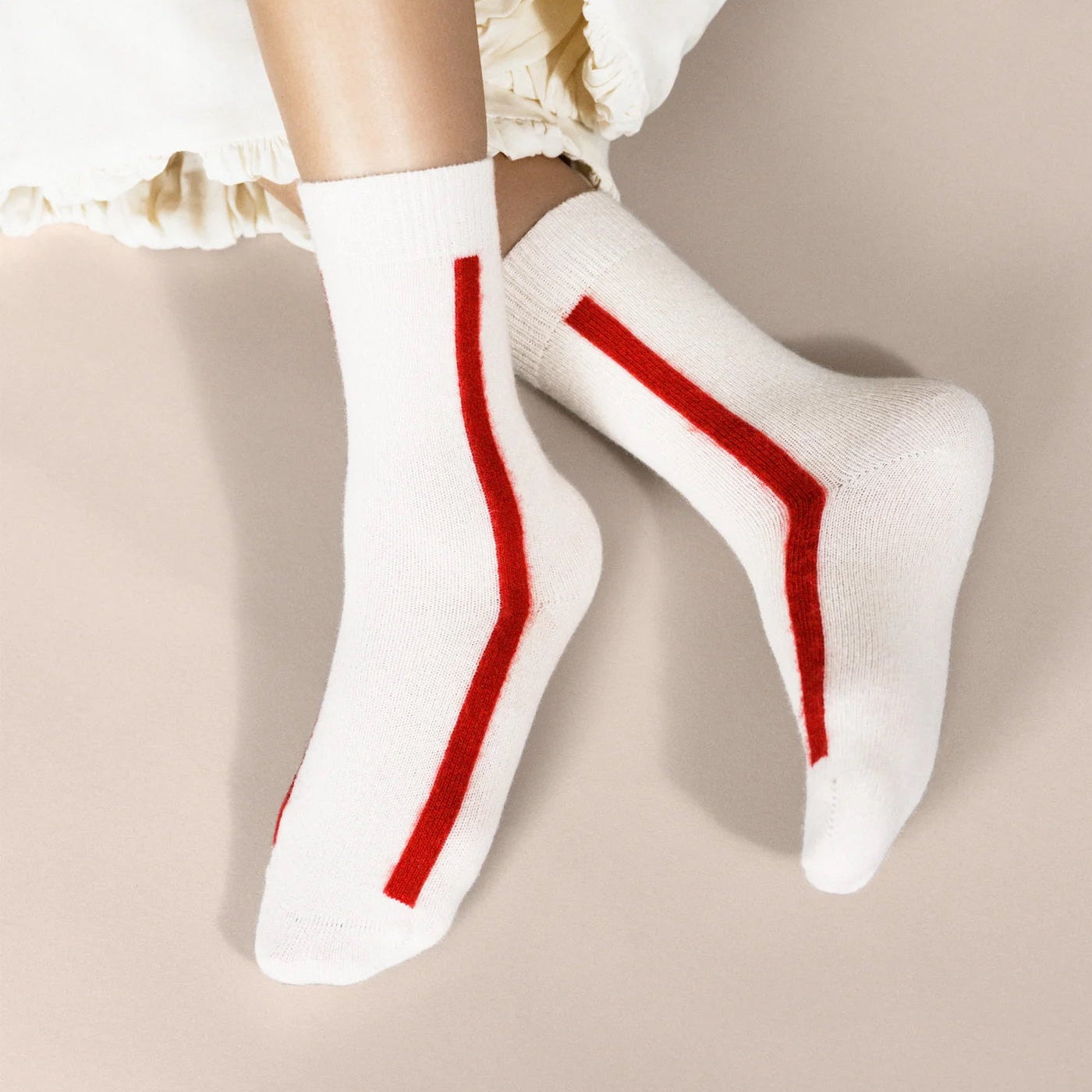 Hansel from Basel’s Racing Stripe Cashmere Crews are soft, sleek, and quietly extravagant. A perfect pop of color and comfort for gifting season — because everyone deserves a little luxury in their sock drawer.