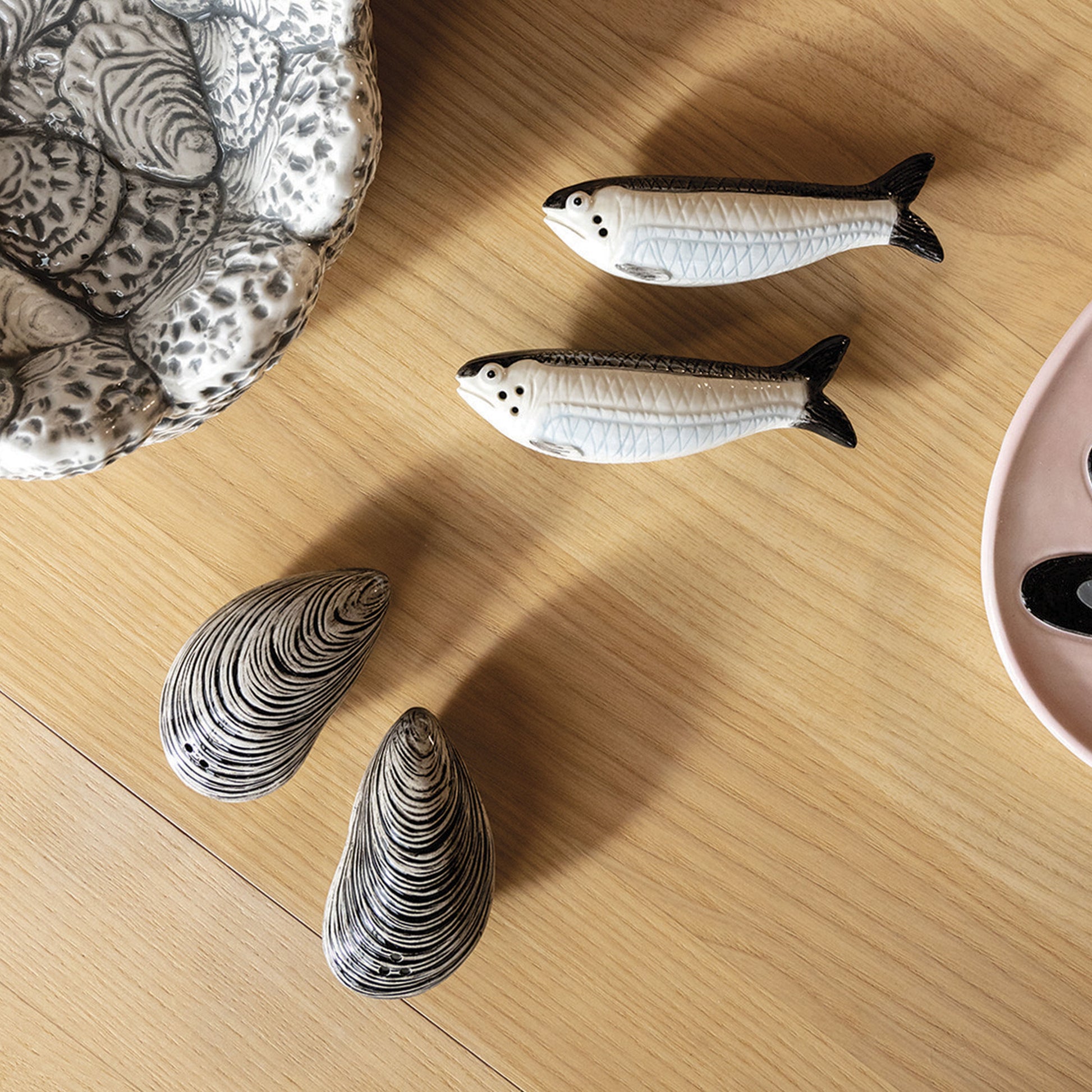These salt-and-pepper-shaker swimmers will immerse you in an underwater world. The hand-painted set resembles a silvery pair of sardine friends. Easy to refill from the bottom.