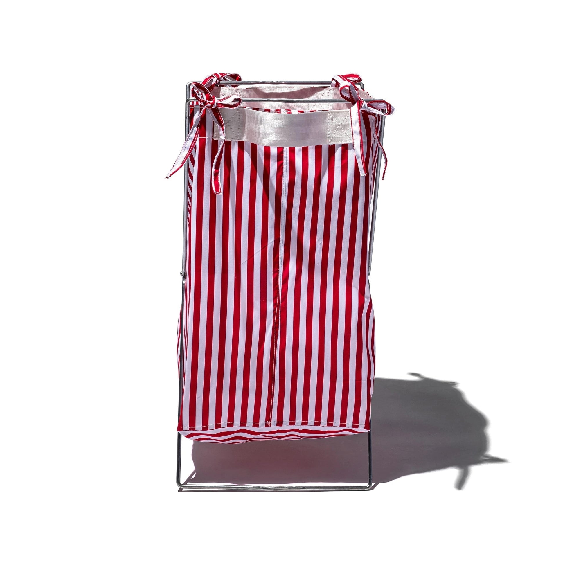 - Tie the strings (4 places) on the top of the bag to the wire frame. Fold the flap part on the inside of the bag to the outside and use it. The bag can be removed and used as a laundry bag