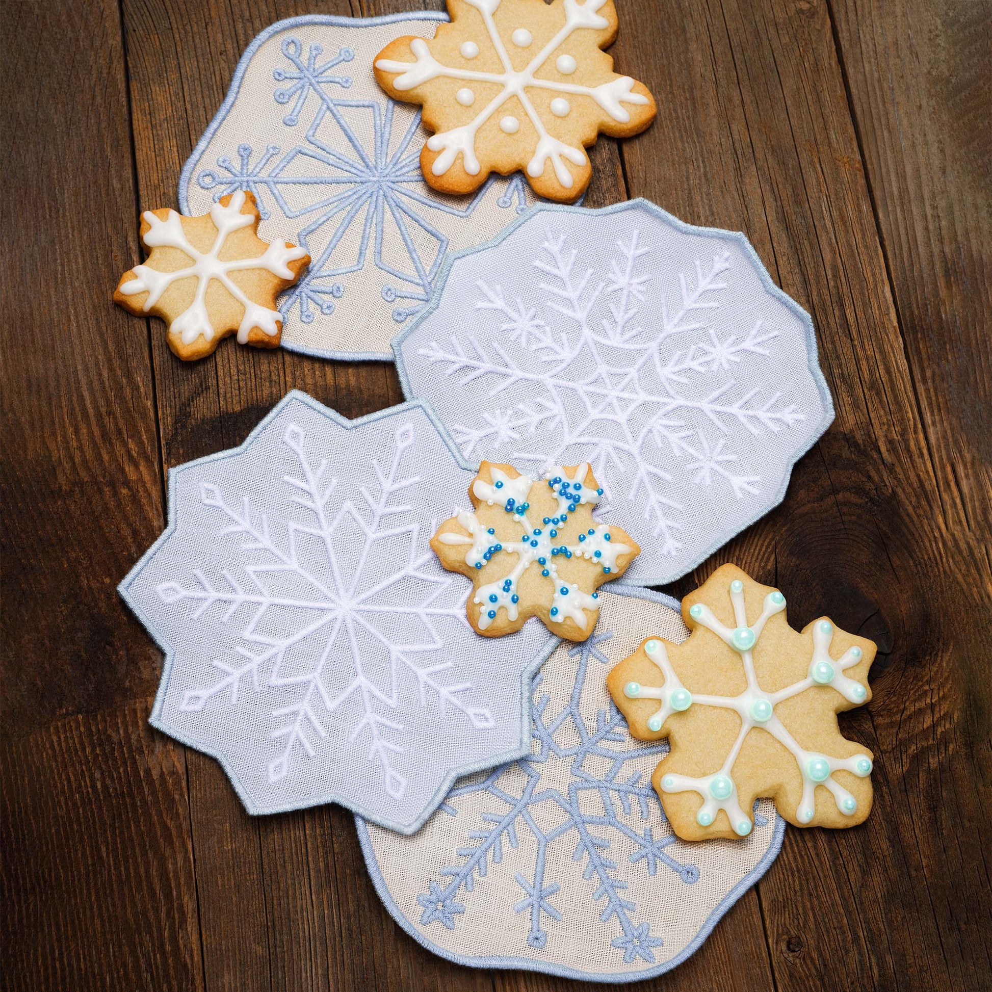 Delicate, detailed, and winter-perfect. This set of four 100% linen cocktail napkins features embroidered snowflakes—each one a little different, just like the real thing. These winter-ready coasters are a frosty finishing touch for holiday hosting, après-ski snacks, or any snow-day sip.