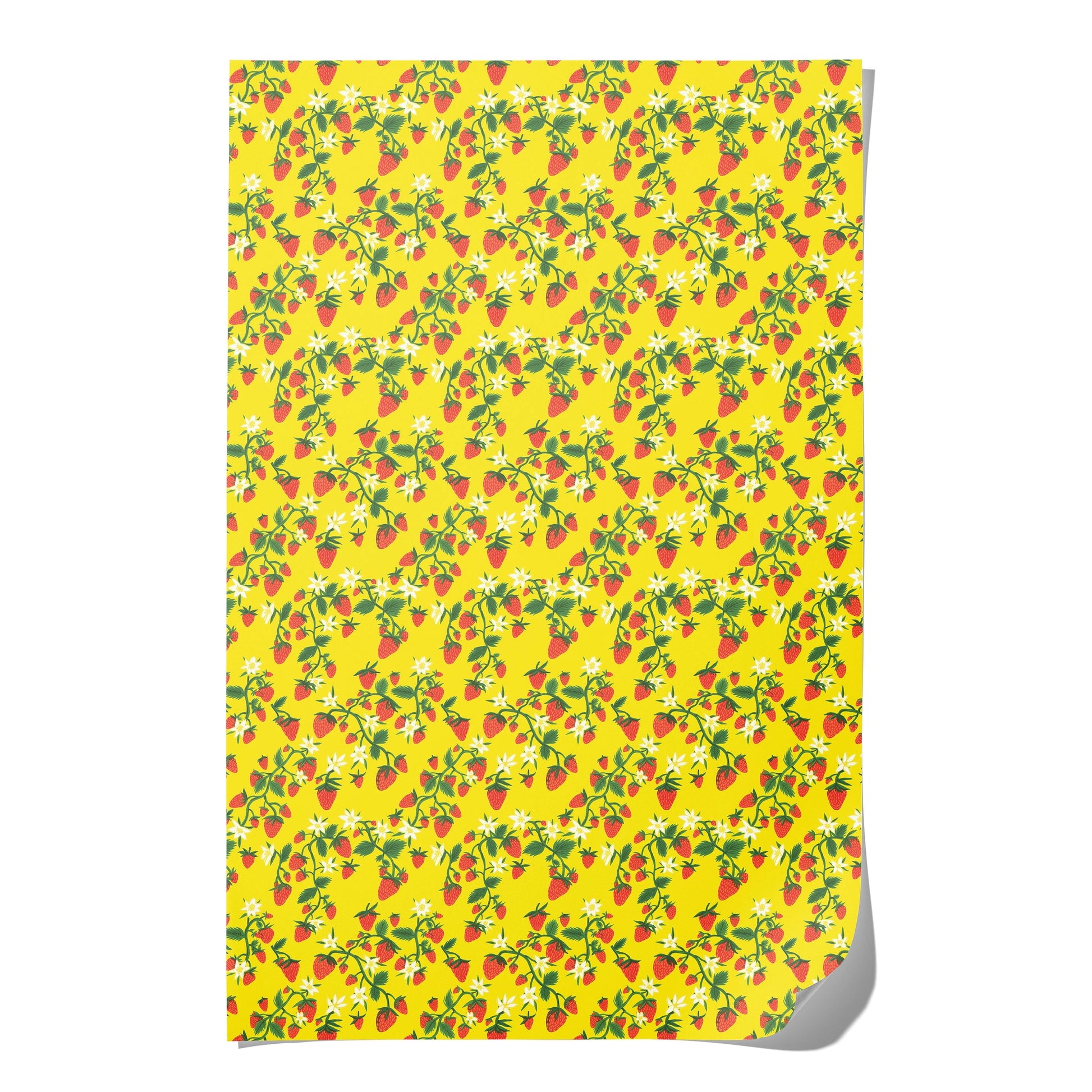 Sweet, sunny, and impossible not to love. This cheerful wrap blooms with bright strawberries and delicate white blossoms on a golden yellow backdrop — a paper that practically hums with summer joy. Wrap up your next gift in something as fresh and joyful as the gesture itself.