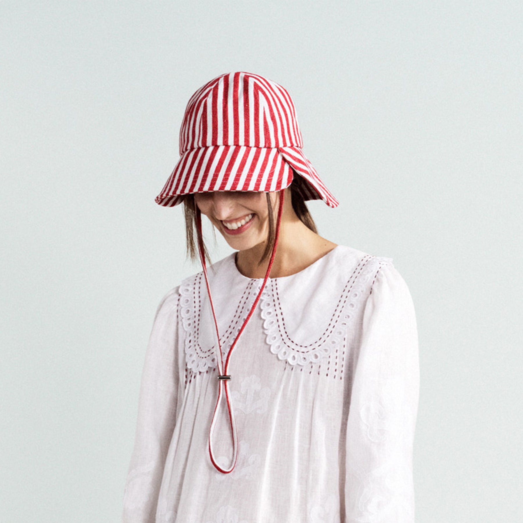The hat equivalent of a perfect summer afternoon. With its candy-stripe pattern and scalloped silhouette, this tulip-brim beauty adds a shot of joy to anything you pair it with. Tie it on, step outside, and let everyone wonder where you’re off to.