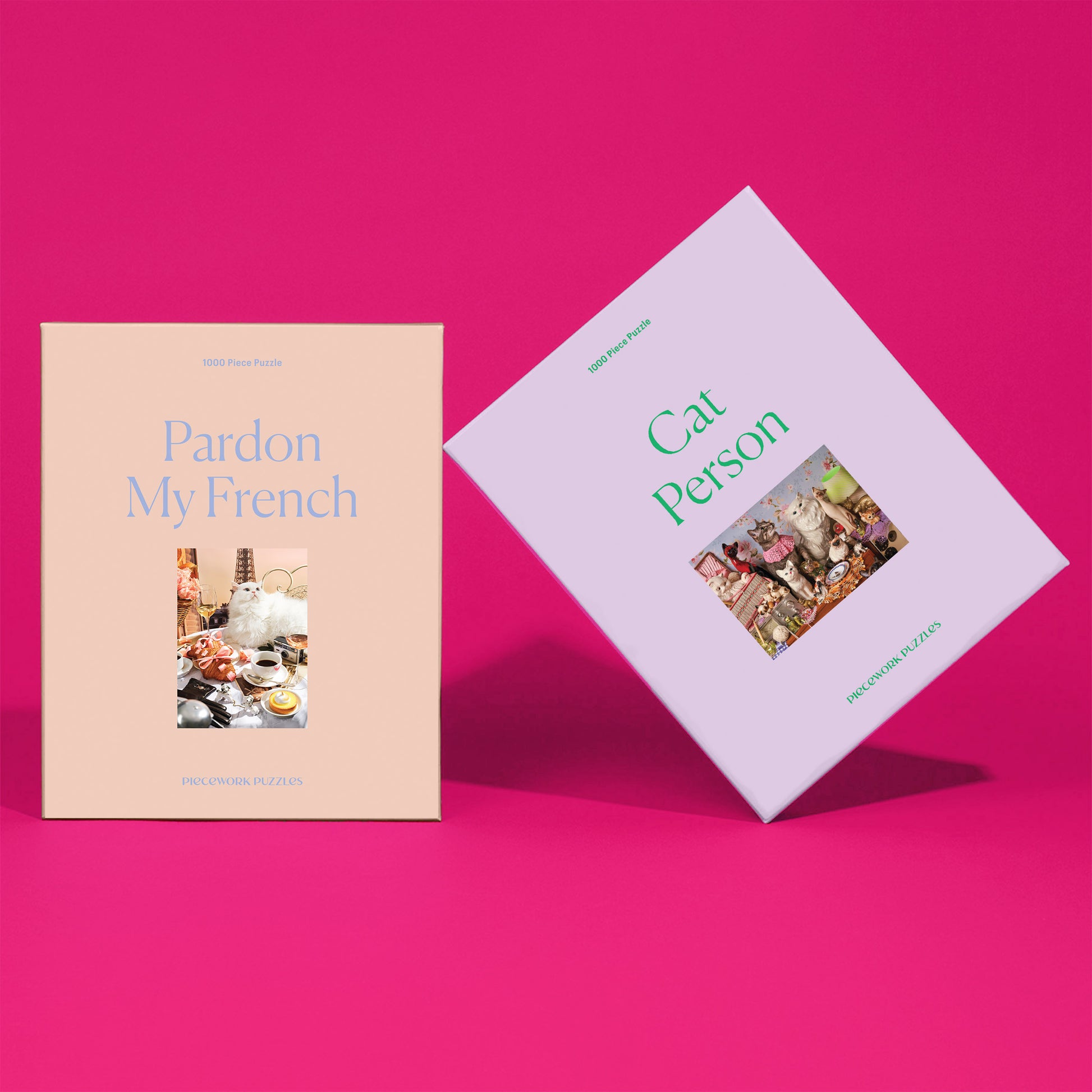 The Cat’s Meow includes Cat Person and Pardon My French, two exceptionally delightful 1000-piece cat puzzles. Whether you’re a lifelong cat lover or just love a good challenge, this bundle delivers twice the feline fun.