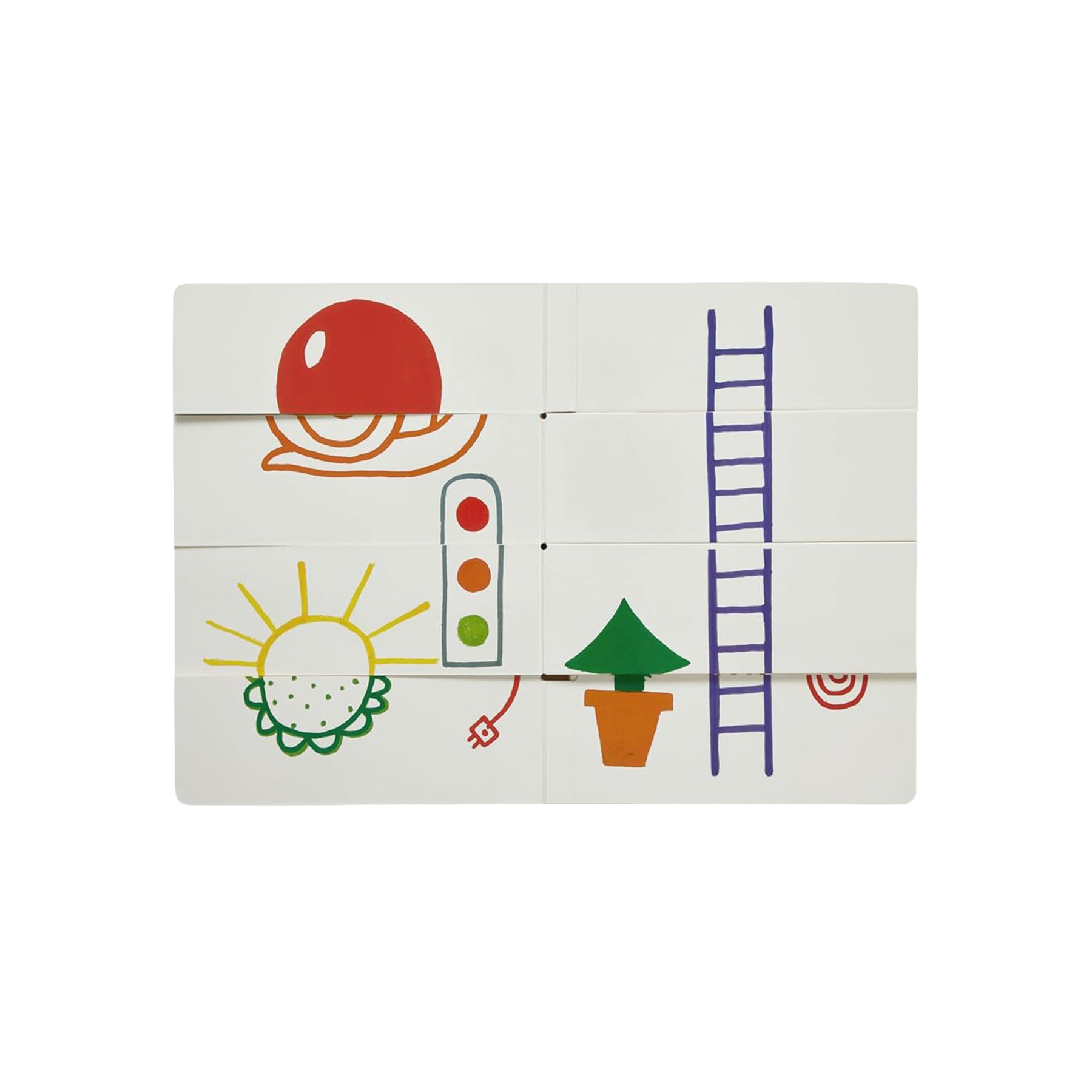 Mix it, match it, make something silly. This interactive board book lets little readers combine more than 50 pictures into wonderfully weird creations— snail-lemons, heart-apples, tree-boats, you name it. Packed with Hervé Tullet’s iconic hand lettering and bold, energetic illustrations, this interactive board book keeps tiny hands busy and imaginations buzzing.