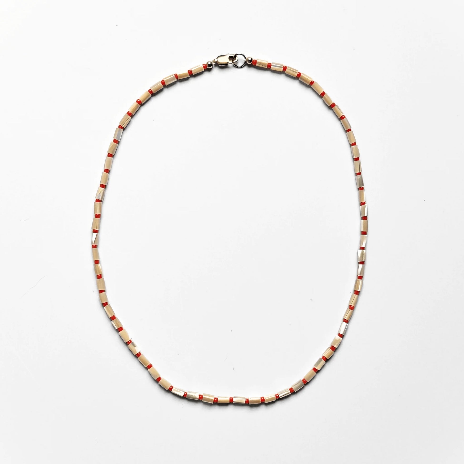- Materials: Mother of Pearl, Japanese glass, silk thread, and 14k gold fill 10mm clasp